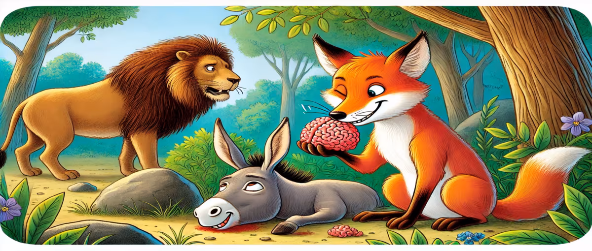 “গাধার যদি মগজ থাকতো তাহলে কি সে আমার কথা শুনে আপনার কাছে আসতো?”, চালাক শিয়াল সিংহ মহারাজকে বললো।