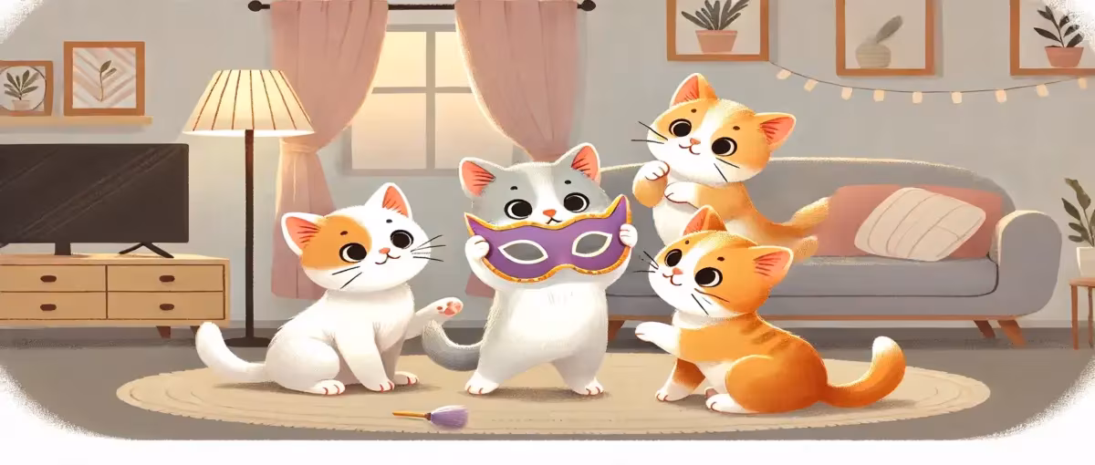 একদিন বিড়াল ছানাগুলো একটি মুখোশ খুঁজে পেলো। মুখোশটি ছিলো অভিনেতার। একটি বিড়াল ছানা সেই মুখোশটি পরে বাকিদের দেখালো।