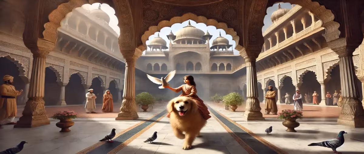 কিন্তু একটি ছোট্ট মেয়ে রাজপ্রাসাদে যাওয়ার উপায় খুঁজে বের করলো। একটি কবুতর হাতে নিয়ে কুকুরের পিঠে চড়ে রাজপ্রাসাদে গেলো মেয়েটি।
